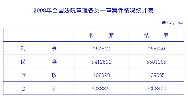 2008年全国法院审理各类一审案件情况统计表