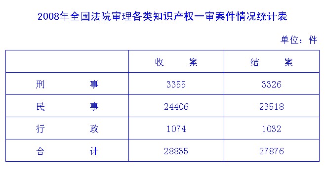 2008年全国法院审理各类知识产权一审案件情况统计表