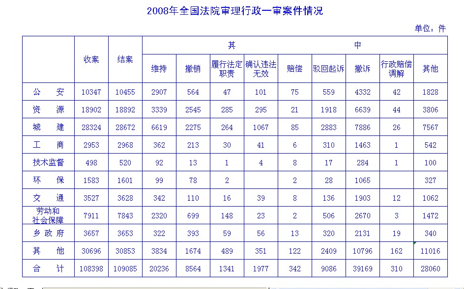2008年全国法院审理行政一审案件情况.xls