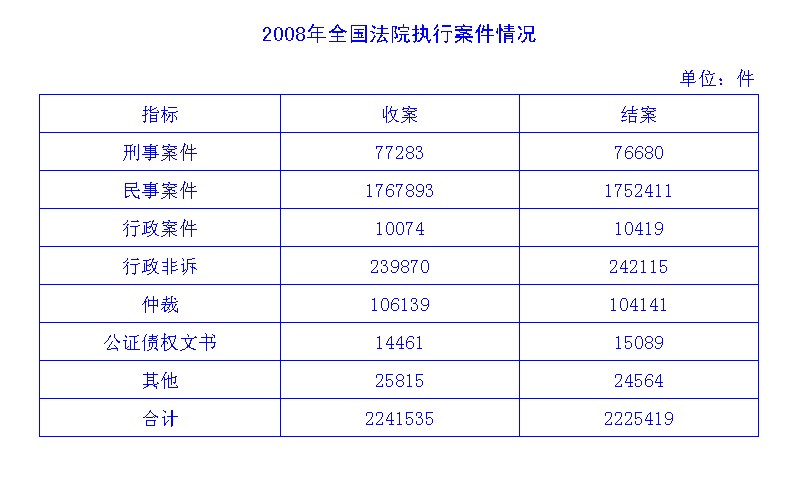 2008年全国法院执行案件情况