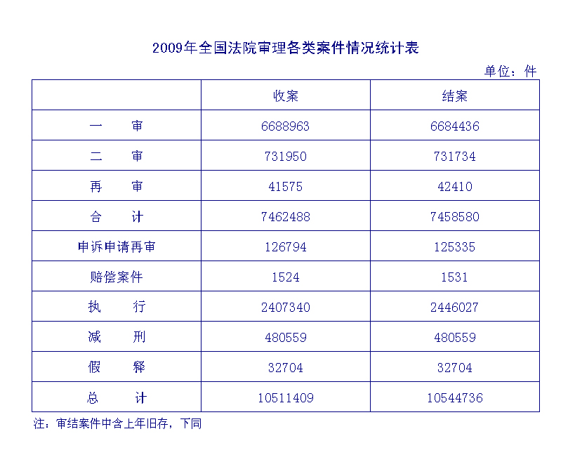 2009年全国法院审理各类案件情况统计表