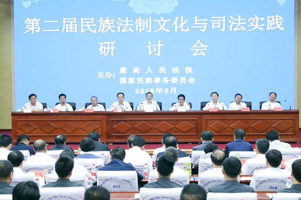 9月6日上午,中华司法研究会民族法制文化研究专业委员会成立大会暨第二届民族法制文化与司法实践研讨会开幕式在国家法官学院舟曲民族法官培训基地举行,最高人民法院党组书记、院长周强出席并讲话。周强强调,要坚持以习近平新时代中国特色社会主义思想为指导,认真贯彻落实习近平总书记关于民族工作的重要论述,加强民族法制文化与司法实践研究,推进司法为民、公正司法,为加强民族团结、促进民族地区繁荣发展稳定提供有力司法服务和保障。