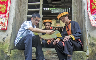 彭泽连在瑶胞家中讲解案例。桂西 摄