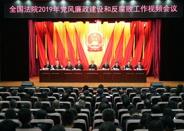 会议指出,2018年以来,在以习近平同志为核心的党中央坚强领导下,各级法院深入学习贯彻习近平新时代中国特色社会主义思想和党的十九大精神,认真落实十九届中央纪委二次全会部署要求,自觉履行全面从严治党责任,党风廉政建设和反腐败工作取得新成绩。各级法院坚持把纪律挺在前面,严格落实中央八项规定精神,强化权力运行监督,严肃查处干警违纪违法案件,不断改进司法作风,确保审判权规范运行,有力推进了法院队伍革命化、正规化、专业化、职业化建设。各级法院充分发挥审判职能,始终保持对腐败犯罪的高压态势,彰显了党中央有腐必惩、有贪必肃的坚强决心。