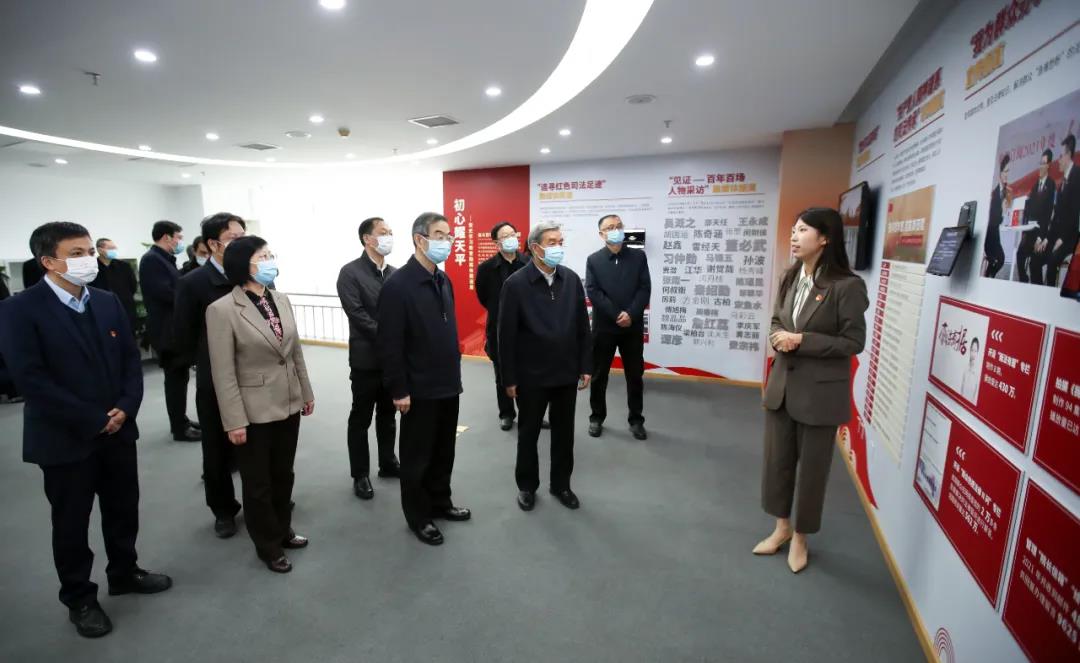 1月20日下午,党史学习教育中央第十一指导组组长王秀峰一行在最高人民法院调研,最高人民法院党组书记、院长周强一同调研。周强、王秀峰深入考察党史学习教育开展情况,要求认真贯彻落实习近平总书记关于党史学习教育的重要讲话和指示精神,切实巩固拓展成果,建立常态化长效化机制,继续把党史总结、学习、教育、宣传引向深入,从党的百年奋斗史中汲取智慧和力量,推进人民法院工作高质量发展,以实际行动迎接党的二十大胜利召开。