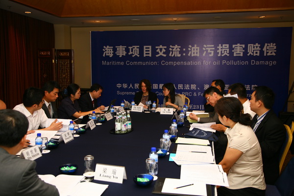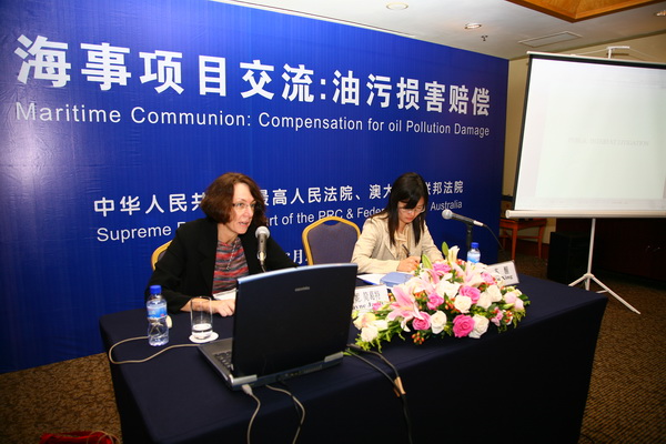 最高人民法院在此次项目交流中邀请了上述3名来访的澳大利亚大法官就《1992年国际油污损害民事责任公约》、《2001年国际燃油污染损害民事责任公约》适用问题、澳大利亚水资源公益诉讼、澳大利亚海事诉讼制度等问题进行交流。期间,参与培训的法官与澳联邦法院大法官分组进行座谈,并以模拟法庭形式对中澳两国船舶油污损害赔偿诉讼和水资源公益诉讼与法律问题进行实证分析。