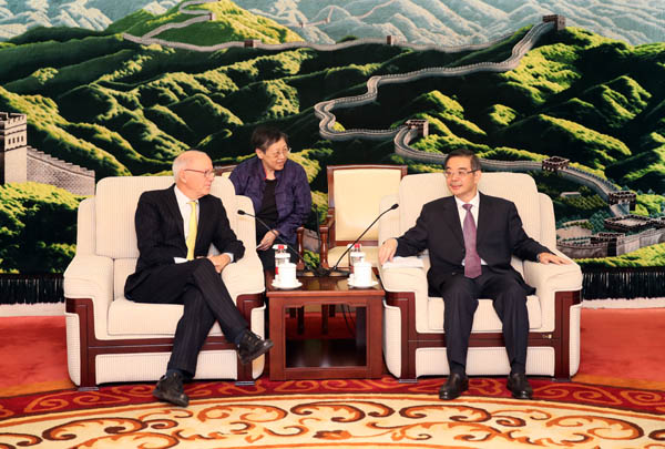 图为 周强会见美国美中关系全国委员会主席欧伦斯。孙若丰 摄