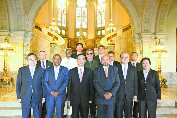 图为中国法院代表团与国际法院法官在海牙和平宫合影。韩 峰 摄