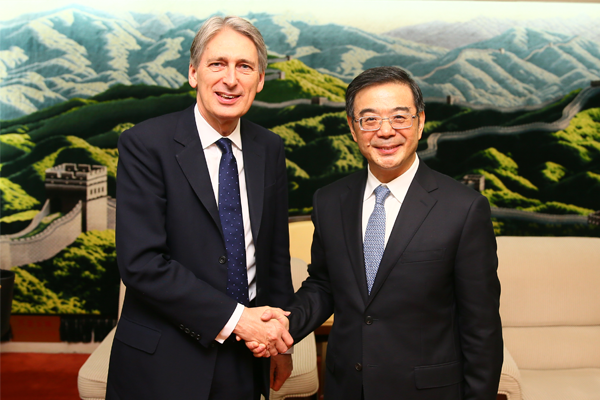 图为最高人民法院院长周强会见英国外交大臣哈蒙德。 孙若丰 摄