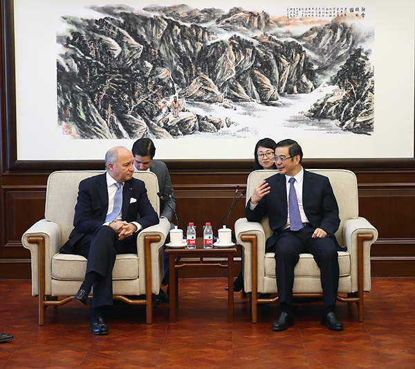 图为最高人民法院院长周强会见法国宪法委员会主席法比尤斯。孙若丰摄