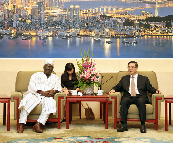 图为最高人民法院院长周强会见贝宁最高法院院长奥斯曼·巴托科。孙若丰摄