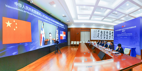 莫利纳介绍了多米尼加司法制度和司法改革等情况,对中国法治建设和法院工作取得的成就表示高度钦佩,希望与中国最高人民法院进一步深化交流合作,分享彼此经验,推动两国司法工作实现新发展。中华人民共和国二级大法官、最高人民法院副院长杨万明和中国驻多米尼加大使张润、多米尼加驻华大使加拉维托参加视频会议并致辞。(记者:孙航)