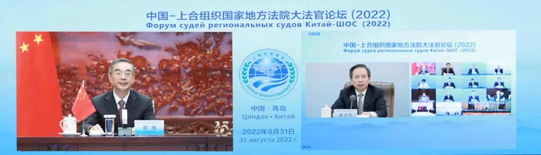 8月31日下午,中国—上合组织国家地方法院大法官论坛(2022)在山东青岛举行。本次论坛由山东省高级人民法院主办,以线上线下相结合的方式举行,中华人民共和国首席大法官、最高人民法院院长周强在线上出席开幕式并致辞。周强表示,希望与会各方高举“上海精神”旗帜,开展更加紧密、务实、高效的司法合作,共同把握新机遇、迎接新挑战,推动构建更加紧密的上海合作组织命运共同体,为世界持久和平共同繁荣作出更大贡献。山东省委书记、省人大常委会主任李干杰在线上出席开幕式并致辞。