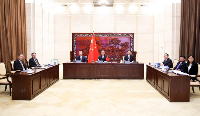 图为周强以视频方式出席第十八届亚太地区首席大法官会议。孙若丰 摄