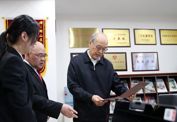 调研组一行还看望慰问了一线法院干警,通过面对面交谈、实地走访等形式,与特邀调解员、志愿者等沟通交流。