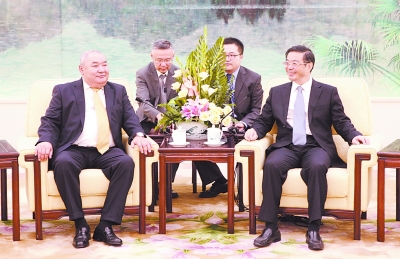 图为周强会见蒙古客人(曹颖逊 摄)