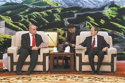 (图为万鄂湘会见世界法学家协会主席贝洛拉维克。孙若丰 摄)