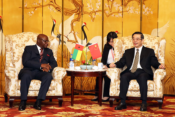 图为 周强会见几内亚比绍最高司法法院院长保罗•萨尼亚。孙若丰 摄