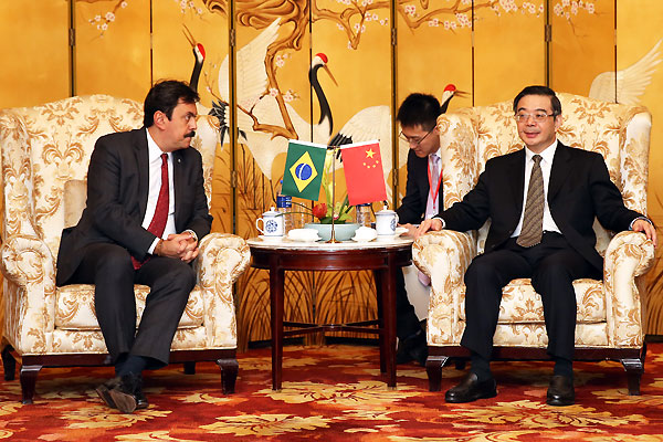 图为 周强会见巴西联邦法官协会主席雅依米·马尔廷斯·德·奥利韦拉·内图。孙若丰 摄