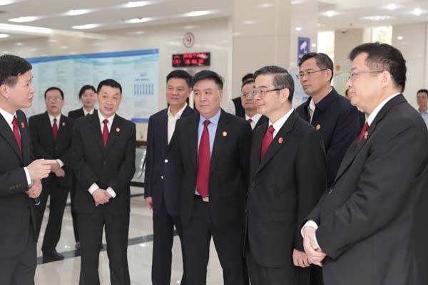 最高人民法院审判委员会专职委员、第一巡回法庭庭长刘贵祥,广东省委常委、政法委书记何忠友,广东省高级人民法院院长龚稼立等参加调研。(宁杰)