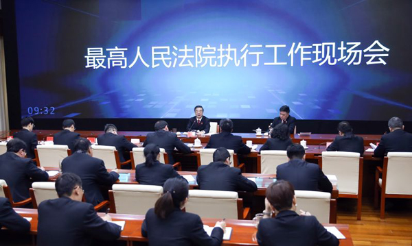 4月3日上午,最高人民法院召开执行工作现场会,最高人民法院党组书记、院长周强在最高人民法院执行指挥中心听取工作汇报,部署当前工作。周强强调,要坚持以习近平新时代中国特色社会主义思想为指导,加强组织领导,狠抓工作落实,以决胜的精神状态和敢打必胜的信心、决心,攻坚克难、顽强拼搏,坚决如期打赢“基本解决执行难”这场硬仗,努力让人民群众在每一个司法案件中感受到公平正义,为决胜全面建成小康社会、夺取新时代中国特色社会主义伟大胜利作出新的更大贡献。