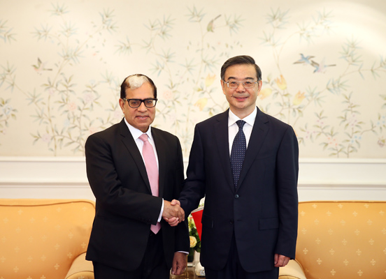 图为周强会见印度共和国最高法院大法官阿尔然·库马尔·西克里。