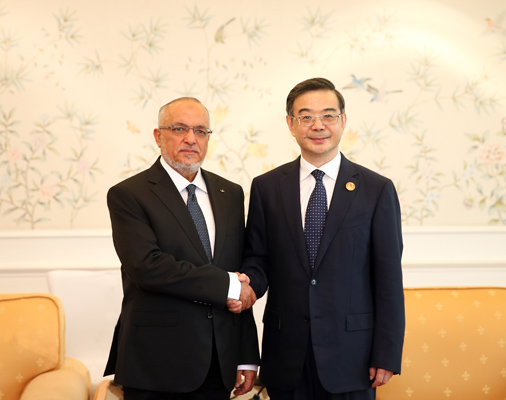 图为周强会见阿富汗伊斯兰共和国首席大法官优素福·哈利姆。