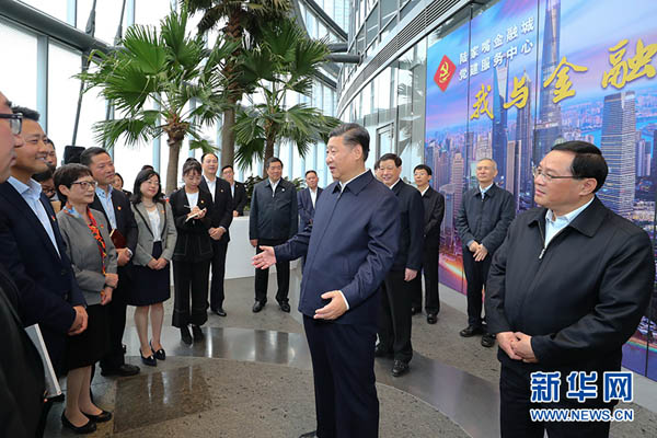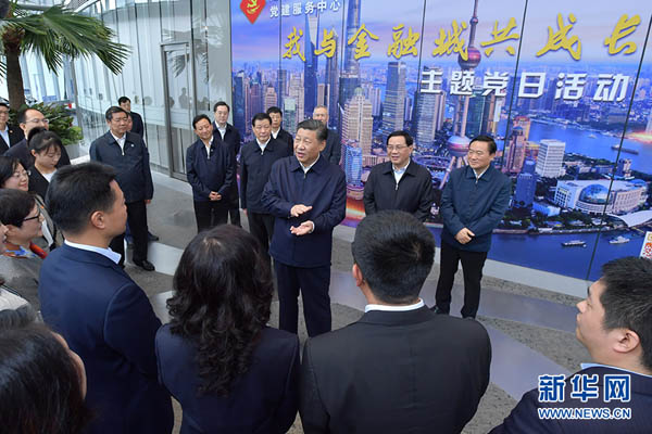 位于陆家嘴的上海中心大厦建筑总高度632米,是已建成的中国第一、世界第二高楼,是上海的一座标志性建筑。2007年,习近平在上海工作期间,十分重视上海中心大厦建设,多次到陆家嘴地区实地调研,亲自研究陆家嘴地区规划,亲自审定上海中心大厦设计方案,推动相关工作,要求把上海中心大厦建设成为绿色、智慧、人文的国际一流精品工程。大厦22层的陆家嘴金融城党建服务中心,是陆家嘴金融贸易区综合党委建立的楼宇党建阵地。6日上午,习近平来到这里,详细了解中心开展党建工作等情况。在党建服务中心的空中花园研讨交流区,3家企业党支部正在联合开展“我与金融城共成长”主题党日活动,习近平来到他们中间,同他们亲切交谈。习近平充分肯定上海从陆家嘴金融城产业集聚、企业汇聚、人才广聚的实际出发,创新党建工作思路和模式,为楼宇内各种所有制企业的基层党组织和党员提供学习指导、管理服务、活动平台的做法。习近平指出,党建工作的难点在基层,亮点也在基层。随着经济成分和就业方式越来越多样化,在新经济组织、新社会组织就业的党员越来越多,要做好其中的党员教育管理工作,引导他们积极发挥作用。基层党建既要发扬优良传统,又要与时俱进,不断适应新形势,拓宽基层党建的领域,做到党员工作生活在哪里、党组织就覆盖到哪里,让党员无论在哪里都能找到组织找到家。希望上海在加强基层党建工作上继续探索、走在前头。我们在有党员的各类企业里建立党组织,目的是为企业的党员提供管理和服务,团结凝聚员工遵纪守法,遵守企业规章制度,发挥党员先锋模范作用。这也有利于企业加强管理,有利于推动企业健康发展。
