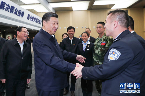 这是习近平在浦东新区城市运行综合管理中心同工作人员亲切握手。 新华社记者 谢环驰 摄