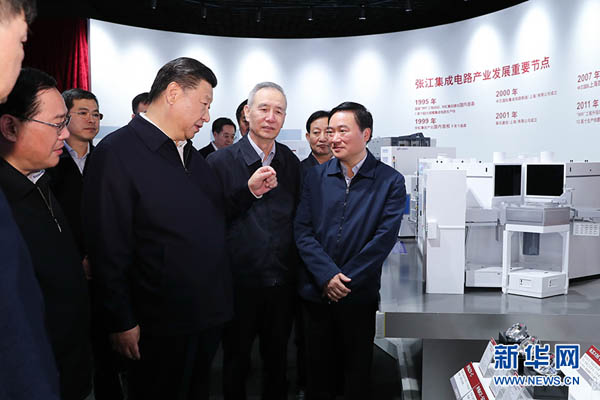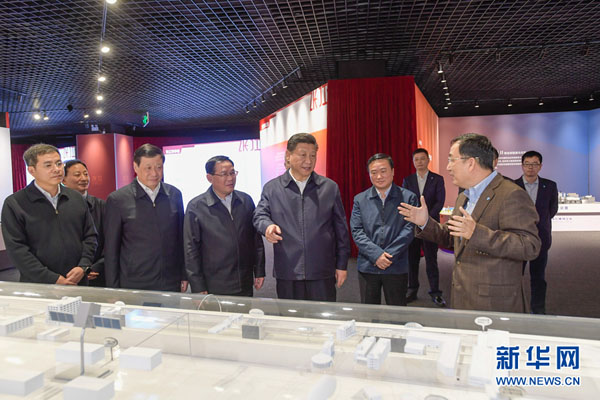 这是6日下午,习近平在张江科学城展示厅考察,了解上海科技创新和科技成果转化情况。 新华社记者 谢环驰 摄