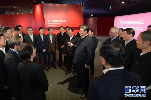 张江科学城作为上海科创中心核心区和国家级科技高地,集聚了一批大科学设施、科学平台和一流创新型院所。在展示厅,习近平听取科学城发展历程及规划建设情况介绍,参观了大科学设施、集成电路、航空航天、生物医药等展区。习近平同在场的科技工作者亲切交谈,他强调,科学技术从来没有像今天这样深刻影响着国家前途命运,从来没有像今天这样深刻影响着人民生活福祉。在实现中华民族伟大复兴的关键时刻,要增强科技创新的紧迫感和使命感,把科技创新摆到更加重要位置,踢好“临门一脚”,让科技创新在实施创新驱动发展战略、加快新旧动能转换中发挥重大作用。要认真落实党中央关于科技创新的战略部署和政策措施,加强基础研究和应用基础研究,提升原始创新能力,注重发挥企业主体作用,加强知识产权保护,尊重创新人才,释放创新活力,培育壮大新兴产业和创新型企业,加快科技成果转化,提升创新体系整体效能。要以全球视野、国际标准推进张江综合性国家科学中心建设,集聚建设国际先进水平的实验室、科研院所、研发机构、研究型大学,加快建立世界一流的重大科技基础设施集群。