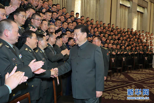 这是6日,习近平在上海亲切接见驻沪部队副师职以上领导干部和团级单位主官,代表党中央和中央军委向驻沪部队全体官兵致以诚挚问候。 新华社记者 李刚 摄