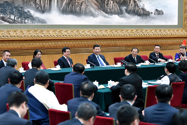 3月7日,中共中央总书记、国家主席、中央军委主席习近平参加十三届全国人大二次会议甘肃代表团的审议。新华社记者 谢环驰 摄