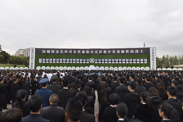 4月4日拍摄的四川木里森林火灾扑救中英勇牺牲烈士悼念活动现场。当日,四川木里森林火灾扑救中英勇牺牲烈士悼念活动在西昌市举行。新华社记者 刘坤 摄