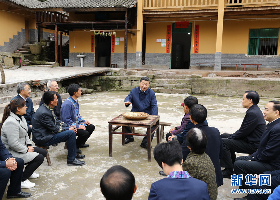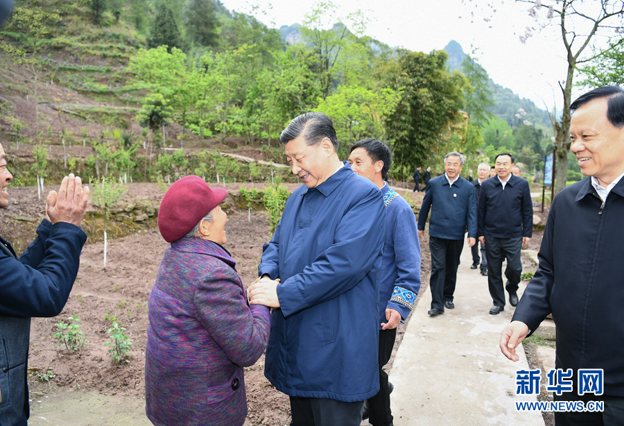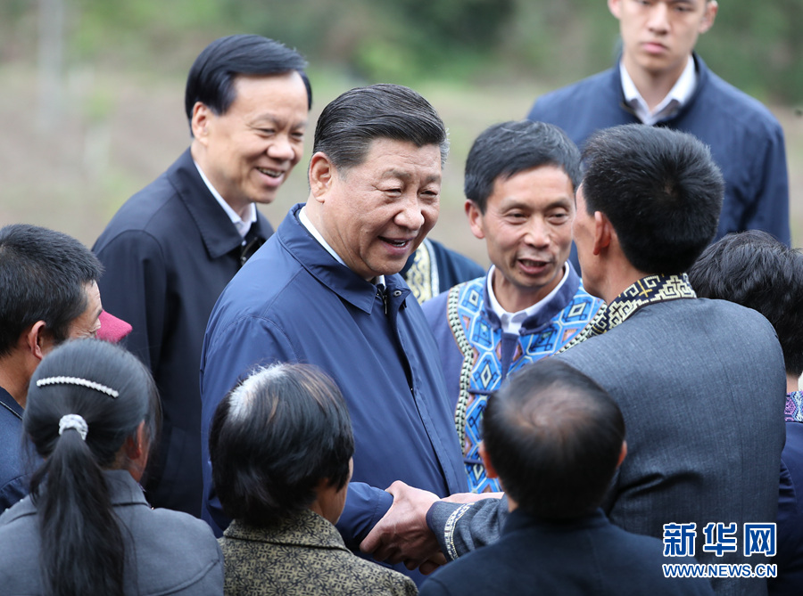 4月15日至17日,中共中央总书记、国家主席、中央军委主席习近平在重庆考察,并主持召开解决“两不愁三保障”突出问题座谈会。这是4月15日下午,习近平在石柱土家族自治县中益乡华溪村同村民亲切交流。新华社记者丁海涛摄