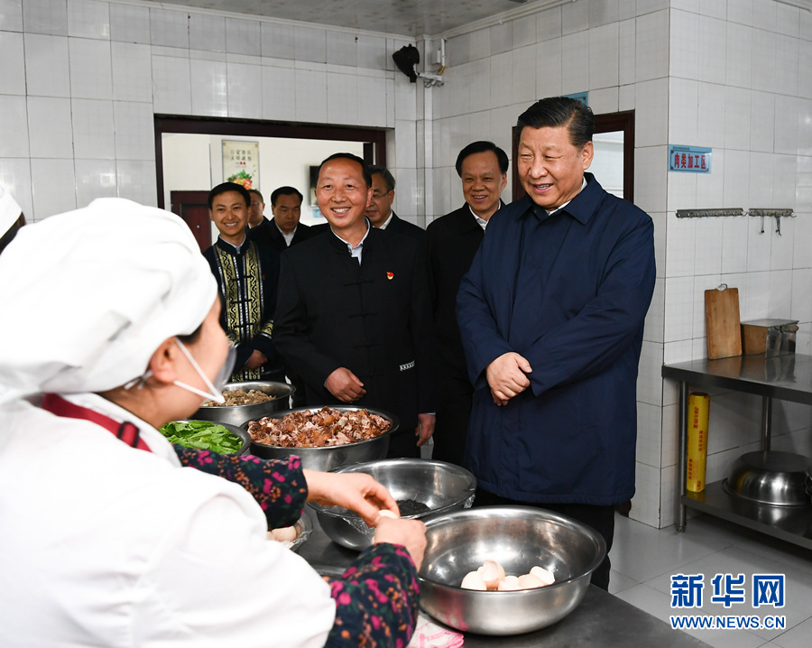4月15日至17日,中共中央总书记、国家主席、中央军委主席习近平在重庆考察,并主持召开解决“两不愁三保障”突出问题座谈会。这是4月15日下午,习近平在石柱土家族自治县中益乡小学走进师生食堂,了解贫困学生餐费补贴和食品安全卫生情况。新华社记者谢环驰摄