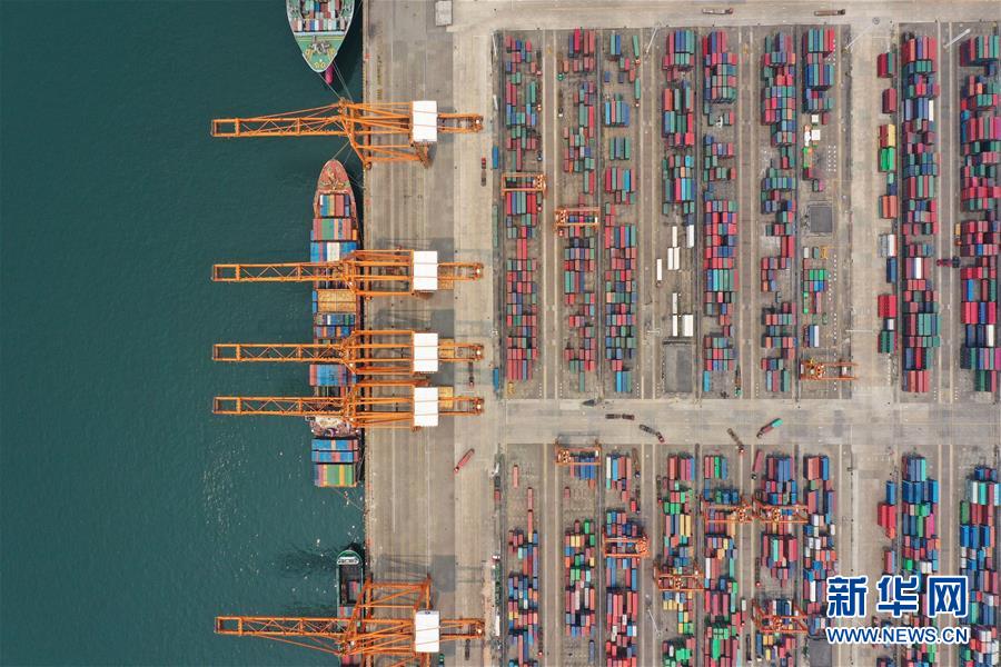 图为广西钦州保税港区码头(4月13日无人机拍摄)。 新华社记者 曹祎铭 摄