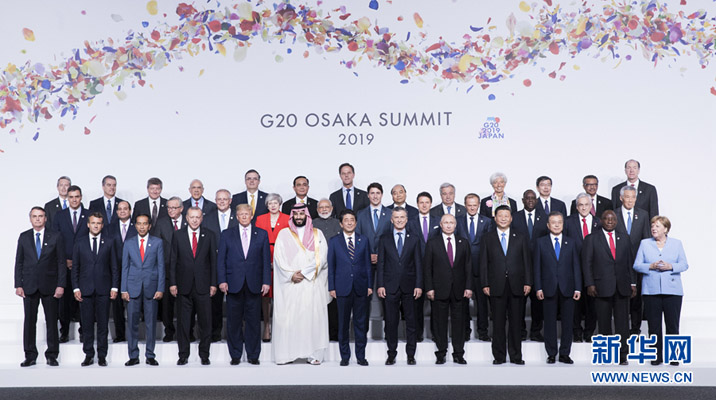 6月28日,二十国集团领导人第十四次峰会在日本大阪举行。国家主席习近平出席并发表题为《携手共进,合力打造高质量世界经济》的重要讲话。这是习近平同其他与会领导人合影。新华社记者 黄敬文 摄
