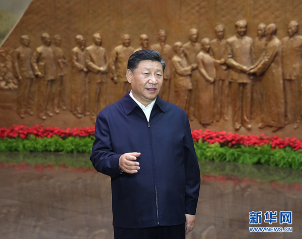 9月12日,中共中央总书记、国家主席、中央军委主席习近平视察中共中央北京香山革命纪念地。这是习近平在香山革命纪念馆参观《为新中国奠基》主题展览,并发表重要讲话。 新华社记者 黄敬文 摄