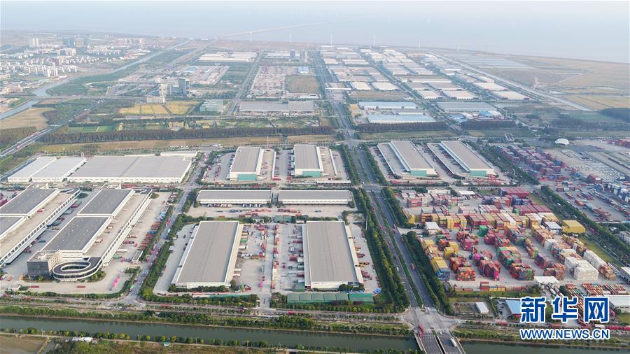 10月24日无人机拍摄的中国(上海)自由贸易试验区临港新片区一角。 新华社记者 丁汀 摄