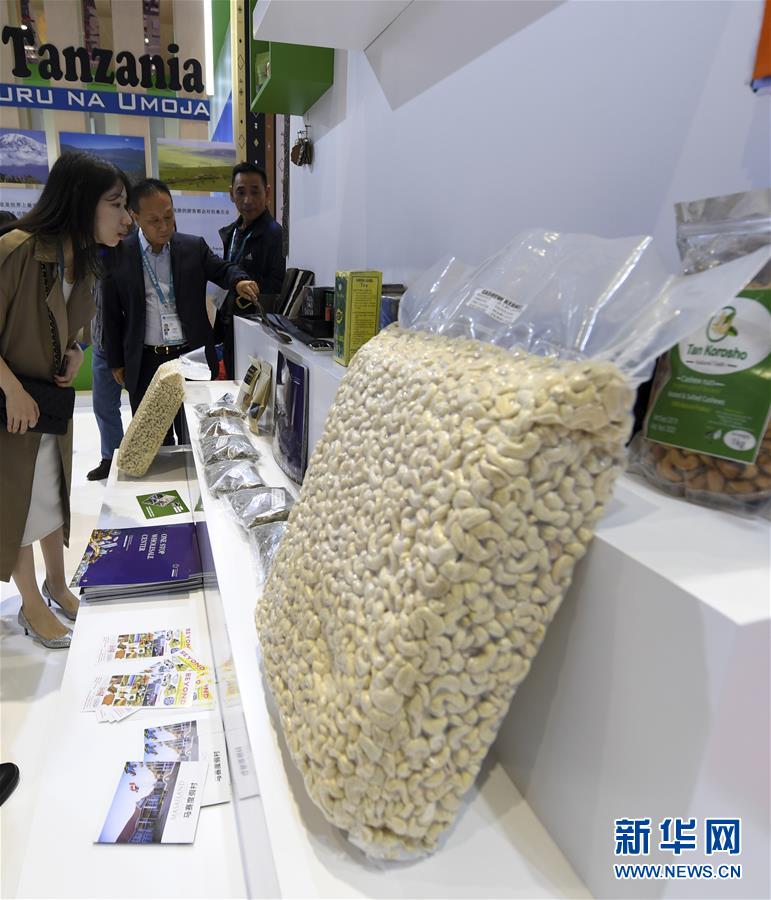 这是在第二届进博会坦桑尼亚国家馆拍摄的腰果产品(11月6日摄)。 新华社记者 范培珅 摄