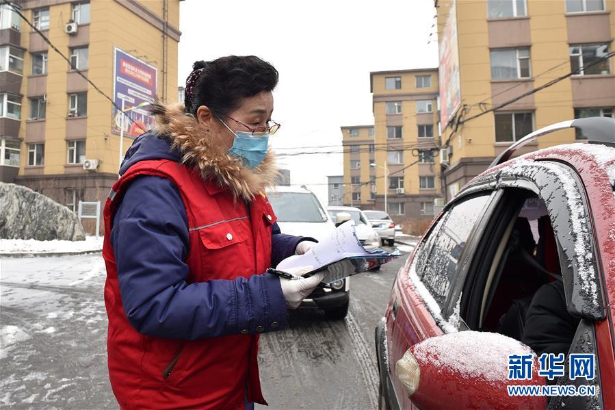 3月7日,吉林省长春市长山花园社区党委书记吴亚琴在登记社区车辆出入信息。 新华社记者 林宏 摄