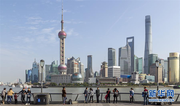 游人在上海外滩观光(1月6日摄)。新华社发(王翔 摄)