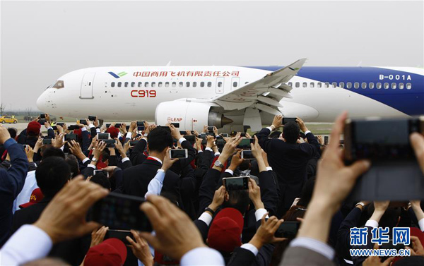 国产大型客机C919在上海浦东国际机场首飞成功(2017年5月5日摄)。新华社记者 方喆摄