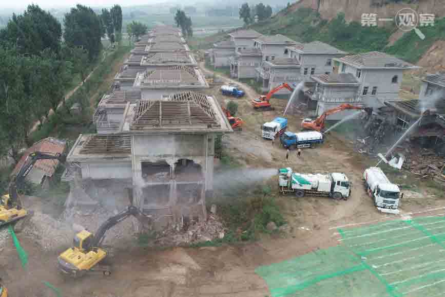 2018年8月14日,大型机械对西安市鄠邑区蒋村镇的违建别墅进行拆除。(新华社记者 邵瑞 摄)