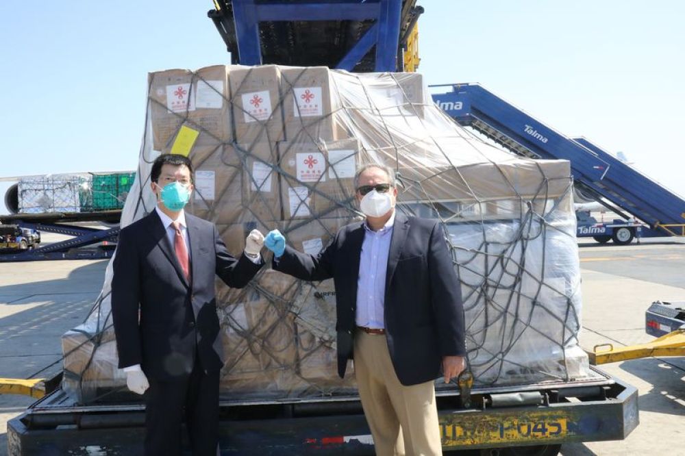 4月26日,中国政府援秘抗疫物资交接仪式在秘鲁举行。图片来源:中国驻秘鲁大使馆网站