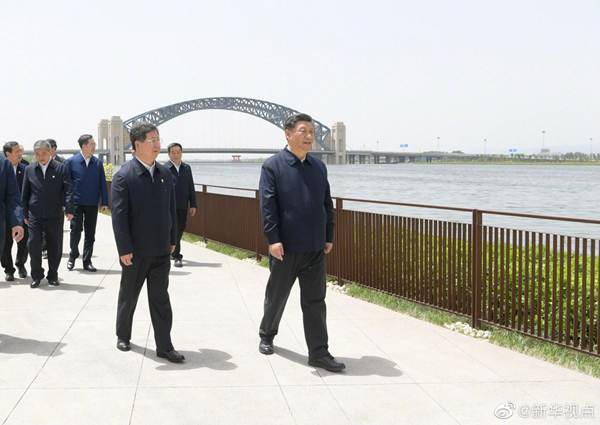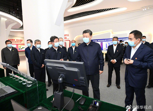 习近平总书记12日在太原考察调研。他先后来到山西转型综合改革示范区政务服务中心、太钢不锈钢精密带钢有限公司、汾河太原城区晋阳桥段,了解传统制造业转型升级、企业复工复产、生态环保和污染防治等情况。(文字记者:张晓松、朱基钗 摄影记者:李学仁、谢环驰、刘彬)