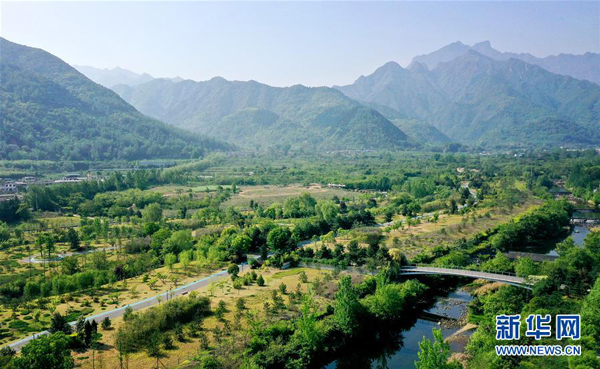 陕西西安市长安区秦岭违建别墅“群贤别业”拆除后建设的秦岭和谐森林公园(4月24日摄,无人机照片)。新华社记者 刘潇 摄