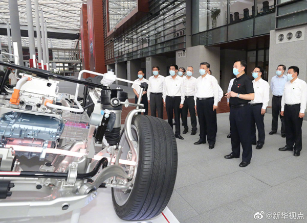 23日下午,正在吉林省考察的习近平总书记来到中国一汽集团研发总院,走进实验室了解企业技术研发情况,并察看了“红旗”等自主品牌的最新款式整车产品。习近平说,看了一汽技术创新和自主品牌建设成果展示,感到眼前一亮。现在,国际上汽车制造业竞争很激烈,信息化、智能化等趋势不断发展,对我们来讲有危有机,危中有机。一定要把关键核心技术掌握在自己手里,我们要立这个志向,把民族汽车品牌搞上去。(记者张晓松 、朱基钗 摄影: 鞠鹏、王晔、燕雁)