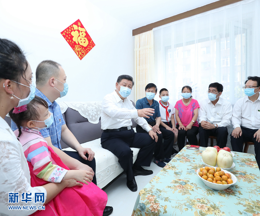 7月22日至24日,中共中央总书记、国家主席、中央军委主席习近平在吉林省考察。这是7月23日下午,习近平在长春市宽城区团山街道长山花园社区,同居民赵兴福一家唠家常。 新华社记者 鞠鹏 摄